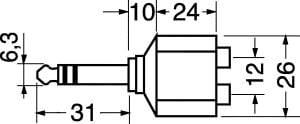 ADATTATORE DA SPINA 6,3 STEREO A 2 PRESE RCA. MANICOTTO:bachelite. PER PRESE:4/3140 - 4/3240. SPINE:4/2000.