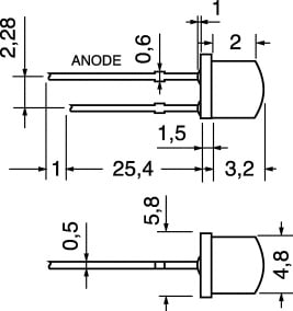 LED AD ALTA LUMINOSITA' TRASPARENTE Ø 5 mm AMPIO ANGOLO. MAX. POT. DISSIP.:100 mW. TEMP. LAV.:-40°C÷+80°C. PER PORTALED:4/8146 - 4/8170.
