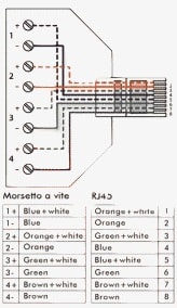 ADATTATORE DA SPINA RJ45 A MORSETTO 8PIN CON MINI CACCIAVITE. Adattatore da spina RJ45 a morsetto a vite. Morsetto ad innesto rapido; i conduttori si fissano tramite un normale cacciavite a taglio (fornito). Il sistema brevettato ne consente il montaggio senza nessuna crimpatrice e/o saldatore. Corpo: PVC . Contatti: nichelati . Morsetti a vite: 8 poli.