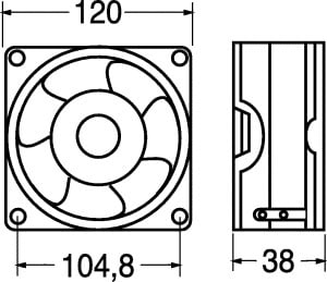 VENTILATORE ASSIALE SUPPORTO CUSCINETTI 120x120x38 mm. Tensione: 220V.