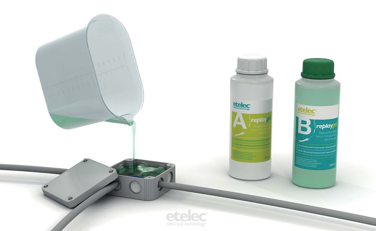 Gel siliconico bicomponente riaccessibile riposizionabile per riempimenti isolanti e sigillature - in fl aconi. Adatto per: Riempimento di muffole e cassette di derivazione; Isolamento di connessioni elettriche 0,6/1 kV; Isolamento di schede e componentielettronici; Indicato in caso di condizioni di installazione disagevoli; Indicato per impieghi in verticale o ad orizzonte rovesciato.