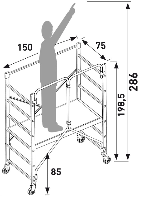 Special PIEGO è trabattello professionale d’alluminio con inedite articolazioni speciali in nylon. Apertura e richiusura rapida a pacchetto e contenuta messa a riposo in unico corpo. Montanti 25x65 mm, ruote con freno, traversini 30x30. Dotato di snodo cancelletto chiudibile e frizione in nylon per rotazione cerniera. Passa per le porte, entra in ascensore con chiusura istantanea si ripone facilmente in poco spazio (21 cm). Lavoro utile 2,86 m, piano di lavoro 87 cm, altezza struttura 1,98.5 m. Piano di lavoro 35x153. Portata 150 D.lgs 81/2008.