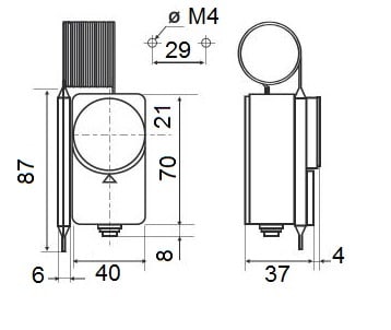 Termostati a capillare per la regolazione della temperatura di caldaie, impianti di condizionamento, impianti di refrigerazione, elettrodomestici, forni elettrici. Microinterruttore in commutazione a scatto rapido con contatti in AgCdO dorati.Tensione nominale d'isolamento Ui 380V~. Corrente nominale di servizio continuativo Ith 15A .Montaggio del corpo termostato a parete.Il bulbo con capillare può essere montato a distanza e fornito di tappi di tenuta o di guaine in rame con attacco Gc ½. Elemento sensibile con membrana in acciaio inossidabile.Bulbo e capillare in rame. Bulbo e capillare in rame stagnato per il tipo C04C2 e C04D2.Basetta in materiale termoplastico antiurto e autoestinguente V0.Uscita dei collegamenti elettrici con passacavo in PVC.Temperatura di immagazzinaggio e trasporto corrisponde alla temperatura ammissibile corpo termostato. Peso unitario 0,16 Kg.All'aumento della temperatura: apre 1-2 chiude 1-4.Funzionamento a dilatazione di liquido.