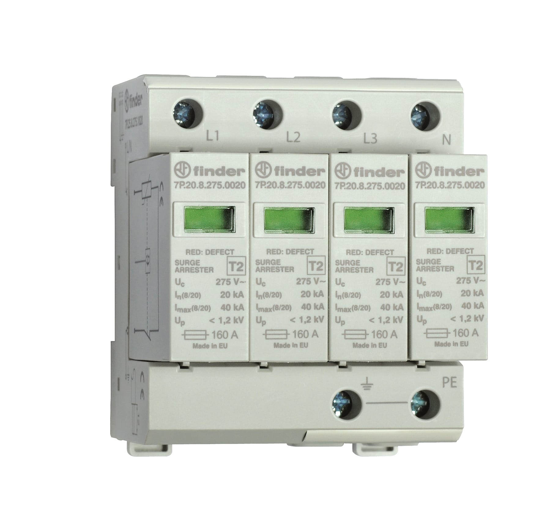FINDER S.P.A. - FIN7P2582751020 SPD CLASSE2 TRIFASE 4P 275VAC 4+0 20KA - 7P2582751020
