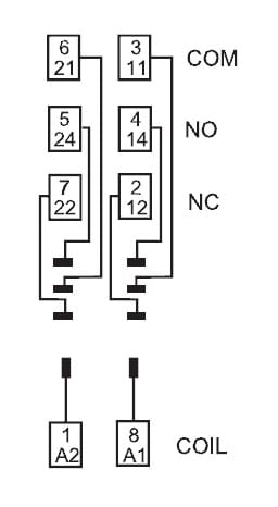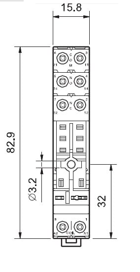 Zoccolo con morsetti a bussola Montaggio: barra cieca 35 mm (A): 8 Colore: Nero Grado di protezione: IP 20 Accessori: Ponticello plastico o metallico;pettine 8 poli;moduli di segnalazione e protezione EMC;moduli temporizzatori