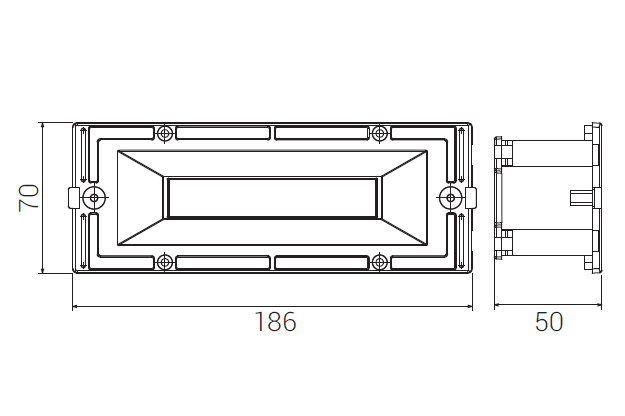 Lampade da incasso a parete a tenuta stagna orizzontale. Serie di apparecchi da incasso a muro per esterni. A montare su scatola 6 moduli o cod. 5482. Corpo lampada in policarbonato. Incastro snaping della maschera sul corpo con ritenzione di sicurezza mediante viti a brugola inox in tinta. Luce diffusa ed uniforme con varie aperture del fascio luminoso simmetrica. Ingresso cavi laterale. Cablaggio passante consentito. Driver incorporato. Numerosi accessori consentono l’utilizzo su palo e per installazione sporgente a parete. Un sistema canale consente di duplicare i punti luce partendo da una sola semplice alimentazione. Led di nuova generazione ad alto rendimento. Vita garantita: 60.000 ore con successivo scadimento max del 20%. Finitura per alluminio:decappaggio + fosfocromatazione + fondo epossidico + verniciatura con polveri epossidiche stabilizzata anti UV. Costruito in conformità alle norme europee EN 60598-1:2015 CE. LED 4.2W 309lm 4000K CRI 85 350mA.