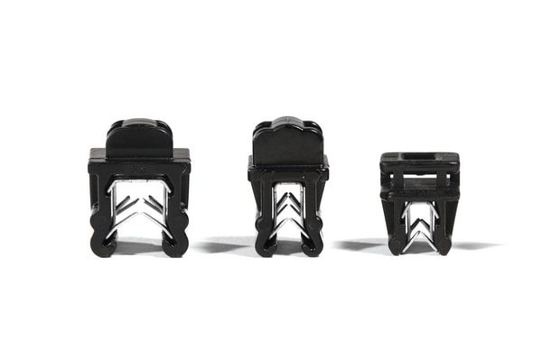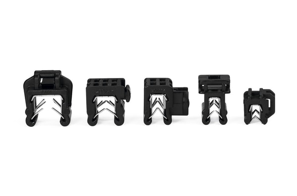 Fascetta 2-piece preassemblata con EdgeClip. La testa della fascetta può essere riposizionata dopo la legatura. EC9, EC10, EC21 ed EC22 sono per diametri di legatura minimi di 1 mm. Per bordi lamiera da 1 a 3 mm di spessore. Queste fascette di cablaggio con ancoraggi per bordo lamiera sono ideali per installazioni in cui non sono consentiti fori o quando la temperatura ostacola l'applicazione di adesivi. Utilizzate dai quadristi e nell'industria dell'automobile, garantiscono un ottimo risparmio di tempo e denaro.