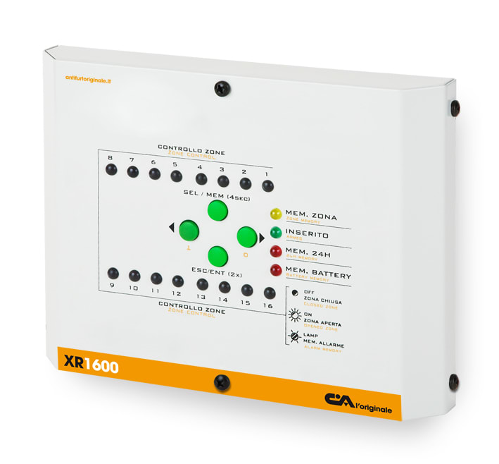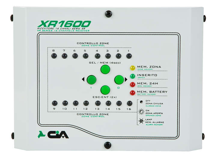 INTERFACCIA 16 CANALI SERIE XR. •Inserimento/disinserimento impianto tramite telecomando XR20 •Funzione anti jamming •Visualizzazione dei codici memorizzati •Visualizzazione uscite memorizzate