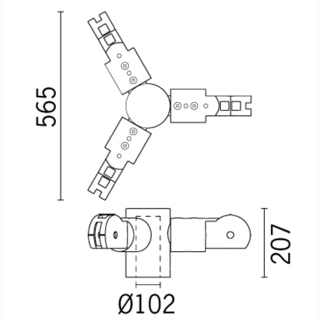 Realizzato in acciaio zincatura a caldo e sottoposto a fosfocromatazione, doppia mano di fondo, passivazione a 120° C, verniciaturaliquida grigia testurizzata RAL 9007, cottura a 150° C. Fissaggio al palo tramite 2 grani M8 antiallentamento. Idone per pali con diametro terminale ø102mm. Dimensioni (mm): 565x207. Colore: Grigio.