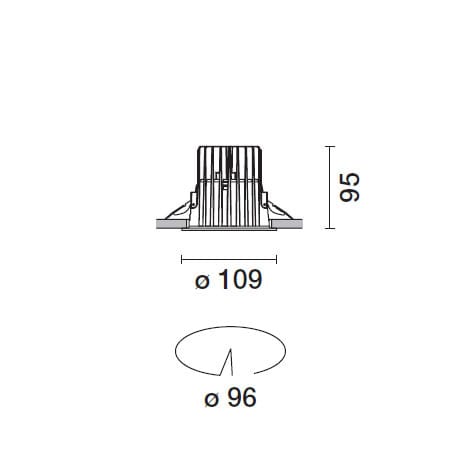 Apparecchio rotondo fisso finalizzato all'utilizzo di sorgente LED con tecnologia C.o.B. Versione con falda per installazione ad appoggio. Riflettore metallizzato con vapori di alluminio sottovuoto con strato di protezione antigraffio. Corpo in alluminiopressofuso e sistema di dissipazione passiva. Prodotto completo di LED in tonalità di colore warm white CRI 90 (3000K). Emissione luminosa luce generale con luminanza controllata UGR<19 1500 cd/m2 α>65° ottica wide flood. LED 13W 1500lm. Warm 3000K CRI 90. Driver Elettronico DALI dimmerabile incluso. Ottica: WF - Wide Flood 44°. Orientabilità: Fisso. Materiale: alluminio e materiale termoplastico. Dimensioni (mm): ø109x95, Peso (kg): 0,65. Colore: Bianco/Alluminio.