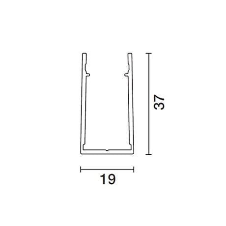 Profilo lineare Alto da superificie L=2000mm, con sede per cavo con connettore a scomparsa dell'Underscore. Realizzato inalluminio anodizzato. Dimensioni (mm): 2000x19x37. Colore: Alluminio (12).