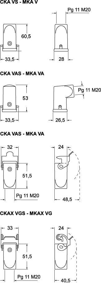 Versione versione standard metallica. Serie custodie mobili con chiusura singola. Tipo Prodotto con 1 leva in acciaio zincato. Varianti uscita verticale. Marchio Qualità : (type: 12, type 4/4X con CKR 65 o CKR 65 D), , EAC. Grado di protezione: IP grado di protezione IP44 (EN 60529), grado di protezione IP66/IP67 (EN 60529) con kit CKR 65 o kit CKR 65 D . Ingresso Cavo Pg11. Grandezza grandezza "21.21". Tipo materiale metallico . Note: Le custodie garantiscono il grado di protezione IP quando accoppiate e bloccate. Completare con opportuni pressacavi.