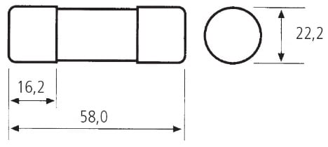 Corpo in steatite adatto a sopportare sbalzi termici molto elevati, riempito di sabbia di quarzo. L’elemento di fusione è composto da una lamina di rame ricoperta in argento. La doppia capsula ricoperta d’argento evita l’ossidazione e mantiene le caratteristiche immutate nel tempo. Tutti i fusibili cilindrici sono progettati per ridurre al minimo la potenza dissipata il cui valore è indicato sul corpo del fusibile stesso. Fusibili CH standard. Grandezza: CH22, SCH22, CH/P22