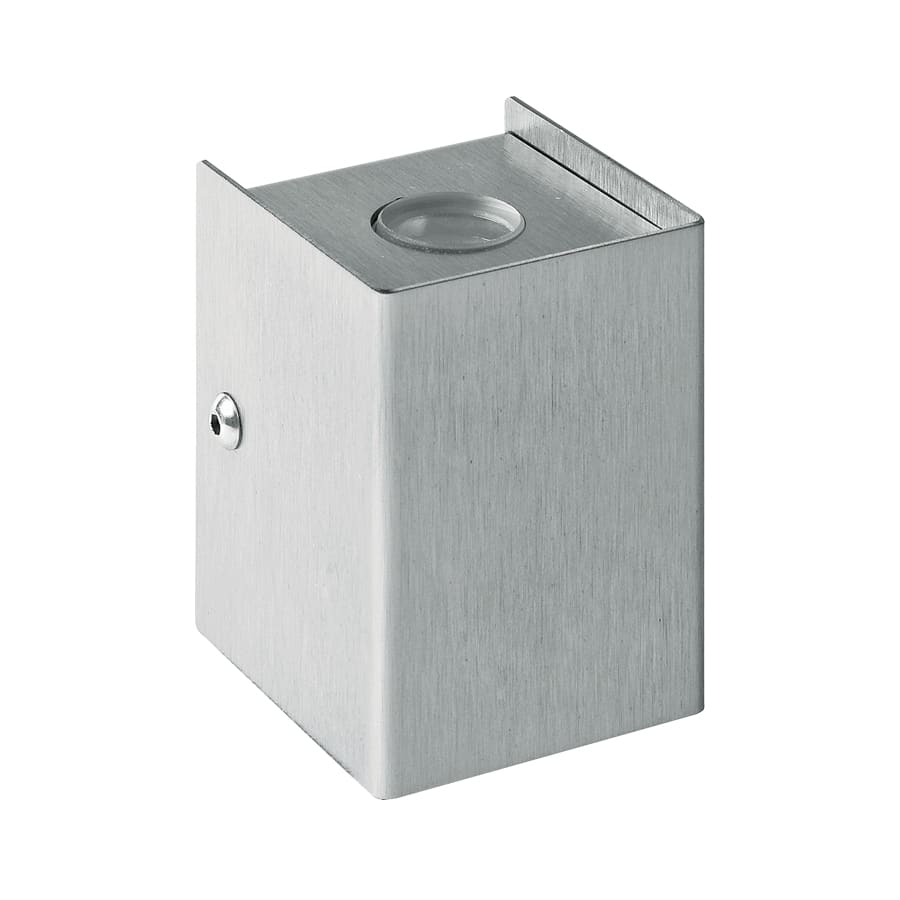 Applique da esterno, monoemissione; su superficie (parete); corpo e ghiera in acciaio inox AISI 316L, vetro extrachiaro trasparente temprato. 2W. 500 mA. 3000 K. 40°.