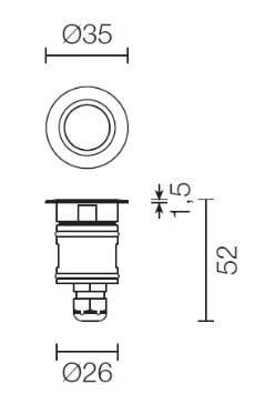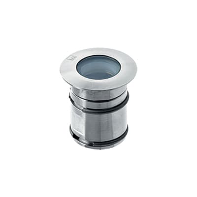 Apparecchio a incasso da esterno o interno; 2W - 24Vdc; 1 power LED; 3000K; CRI: >80; ottiche: 20°; flusso totale: 88 lm (3000K); corpo in Acciaio Inox AISI 316L, ghiera in Acciaio Inox AISI 316L di spessore 10mm, schermo in vetro extrachiaro temprato con trattamento antigraffio di spessore 6mm; finitura: Acciaio Inox AISI 316L; temperatura di esercizio: -10°C +45°C; temperatura vetro: max 40°C (Ta 25°C); dotato di sistema IPS (utilizzare corrugato Ø20 min); grado di protezione contro i liquidi e i corpisolidi: IP68; grado di resistenza all'impatto IK08; sicurezza fotobiologica: gruppo rischio 1 secondo EN62471:2006; montaggio con cassaforma WC0201/WC0202, accessorio ghiera con molle WG0300 per installazione su pannellature, cartongesso; classe di isolamento III; peso 0,20kg; dimensioni ø35x52mm; foro d'incasso ø30mm; volume d'ingombro cassaforma Ø80x79mm; collegamento in parallelo, con cavo 1,5m tipo H05RN-F 2x0,75 Ø6,7mm; dimmerazione disponibile mediante dimmer in tensione; accessori disponibili: cassaforma WC0201/WC0202, molla WG0300 (spessore minimo 5mm), nido d'ape WH0101.