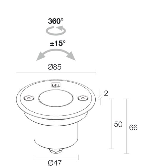 Incasso da esterno (non adatto per immersione in piscine e fontane); a incasso (soffitto, parete, pavimento); 3,5W. Flusso sorgente: 184 lm. 4000 K. 20°. Colore inox. Tondo