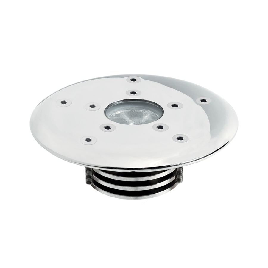 Incasso uplight da esterno e immersione; a incasso (parete, pavimento), profondità massima 10 m; corpo e ghiera in acciaio inox AISI 316L, schermo in vetro extrachiaro temprato trasparente. 6w. 500 mA. 3000 K. 24°. Colore Inox