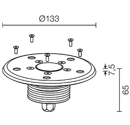 Apparecchio a incasso da esterno o immersione; calpestabile; 6W - 350/500mA; 3 power LED; 4000K; CRI: >80; ottiche: 35°; corpo in Acciaio Inox AISI 316L, ghiera in Acciaio Inox AISI 316L, schermo in vetro extrachiaro temprato con trattamento antigraffio di spessore 6mm, protezione alla sorgente luminosa in vetro borosilicato, guarnizioni siliconiche; finitura: Acciaio Inox lucidato; temperatura di esercizio: -10°C +45°C; temperatura vetro: max 40°C (Ta 25°C); dotato di sistema IPS; grado di protezione contro i liquidi e i corpi solidi: IP68; grado di resistenza all'impatto IK10; Glow Wire Test: 960°; sicurezza fotobiologica: gruppo rischio 1 secondo EN62471:2006; montaggio con cassaforma WC5002; classe di isolamento III; peso 0,80 kg; dimensioni Ø133x70mm; collegamento in serie, con cavo 5m tipo H05RN-F 2x0,75; dimmerazione disponibile mediante alimentatore dimmerabile; accessori disponibili: cassaforma WC5102 per installazione su pareti con guaina isolante.