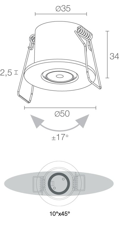 Apparecchi da incasso a LED ideali per illuminazione di accento e di effetto. Eyes 3.0 possono essere realizzati in differenti finiture, temperature colore ed ottiche, con l’obiettivo di farne la soluzione più adatta per ogni tipo di ambiente. La vasta potenzialità d'uso di questi incassi e specialmente l'utilizzo del LED, favorisce nuove idee applicative in ambienti domestici, alberghieri e commerciali, lasciando al progettista un'ampia libertà nell'illuminazione generale, puntuale e scenografica. 40°. 5000 K. Colore Cromo. 2W. 103lm