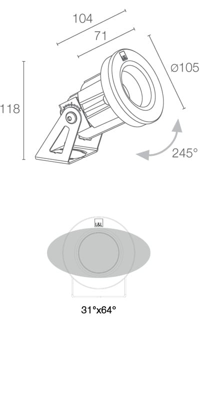 Proiettore da immersione (non adatto per immersione in acqua salata, non adatto per applicazioni fuori dall’acqua);su superficie (parete, pavimento); corpo in tecnopolimero termoconduttivo, ghiera in acciaio inox AISI 316L; schermoin vetro extrachiaro temprato; staffa in acciaio inox AISI 316L; finiture: acciaio inox microsabbiato. 9W. 4000 K. 62°. 359 lm