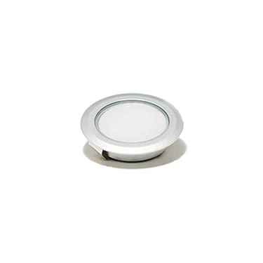 Simply 1.0 - Incasso uplight da interno; a incasso (pavimento); corpo e ghiera in alluminio anodizzato lega EN AW 6082, schermo in policarbonato opale; finiture: cromato perla; 1 power LED; max 1W - max 220mA; inclusi 2 cavi unipolari di 0,30 m; collegamento in serie; ottica diffusa; colore LED: blu; grado di protezione: IP44; temperatura di esercizio: 0°C +45°C; temperatura schermo: max 40°C (Ta 25°C); sicurezza fotobiologica: gruppo rischio 1 secondo EN62471:2006; classe di isolamento III; peso 0,02 kg; dimensioni Ø26x10 mm; foro d'incasso Ø28 mm; volume tecnico per dissipazione: Ø40x10 mm; dimmerazione disponibile mediante alimentatore dimmerabile. LED blu 1W 220mA.