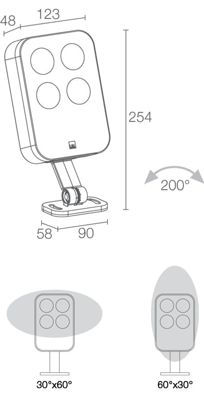 Proiettore da esterno; su superficie (soffitto, parete, pavimento, picchetto); corpo in alluminio pressofuso lega EN AB 47100, schermo in vetro extrachiaro temprato e serigrafato.RGBW. 20W. 1059 lm. 21°.Grigio