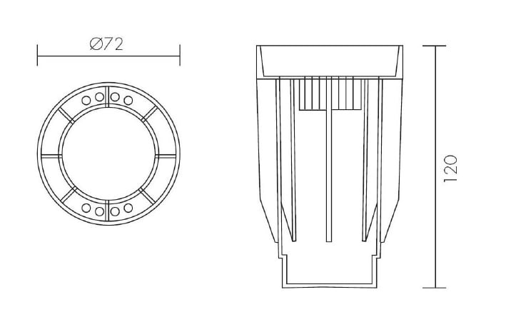 La cassaforma facilita l’installazione della lampada. Posizionare la cassaforma con la parte superiore a filo de livello finale de pavimento. Diametro 72mm.