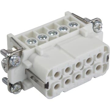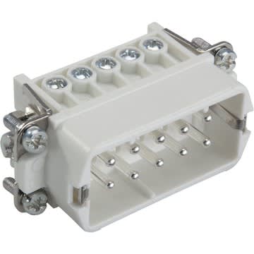Inserti per connettore H-A fino a 400V con collegamento filettato di facile manutenzioneLa matrice standard compatta può essere collegata semplicemente a una spina e utilizzata universalmente per la conduzione di corrente e tensione, ad esempio nei sistemi di controllo.Nuova maggiore rigidità dielettrica, 400V in spazi ristrettiUniversale per la trasmissione di corrente e tensioneMade in Germany
