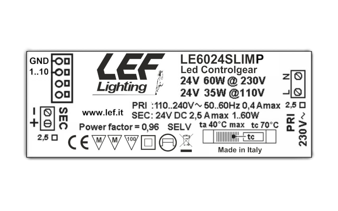 L.E.F. SRL - LEFLE6024SLIMP ALIM. LED TENS. COSTANTE 60W 24VDC SLIM - LE6024SLIMP