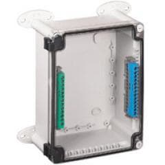 Scatola plastica 130 x 130 x 74 mm. IP55/IK07. Colore grigio RAL 7035. Pareti lisce. Coperchio trasparente