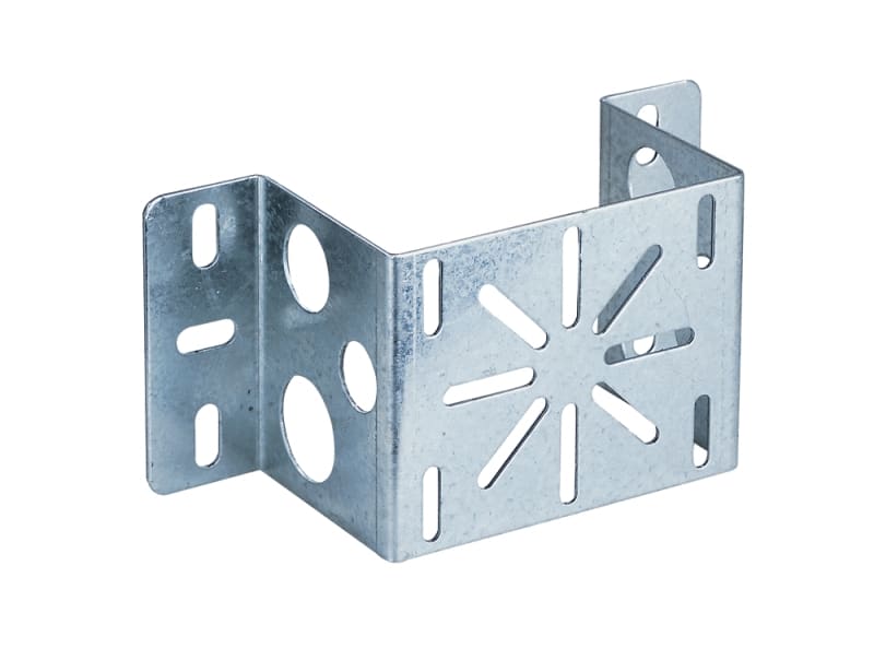 Supporto scatola/guaina universale. Finitura Z: acciaio zincato sendzimir. Supporto per il montaggio di scatole di derivazione e raccordi per la derivazione con guaine.