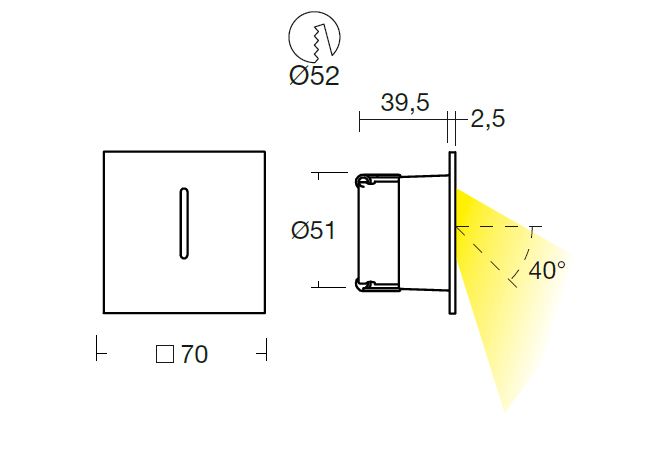 LINEA LIGHT (ILED) - ILD92562N05 CUT 4 QU.CONTROCASSA 1LED 2W INOX - 92562N05