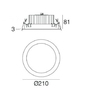 L'apparecchio presenta una classe di isolamento III ed è installabile a soffitto, con foro tondo di diametro 197 mm (nel cartongesso).