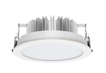Downlights a singola emissione per applicazione indoor. La sorgente luminosa LED, di colore bianco naturale, con distribuzione luminosa General Lighting, è composta da 108 LED topled, con una CCT 4000 K ed un CRI 80; il flusso luminoso della sorgente è di 3672 lm, con un'efficienza nominale di 122.4 lm/W.