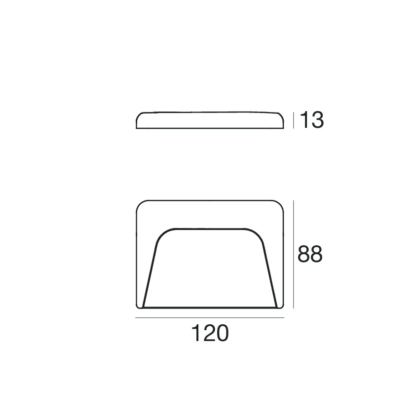 Lampada a parete a singola emissione per applicazione outdoor. La sorgente luminosa LED, di colore bianco naturale, con distribuzione luminosa Asymmetric Wallwasher, è composta da 12 LED topled, con una CCT 4000 K ed un CRI 80; il flusso luminoso della sorgente è di 60 lm, con un'efficienza nominale di 60.0 lm/W. Il corpo dell'apparecchio, realizzato in alluminio pressofuso en ab - 46100, presenta una finitura di colore grigio ral 9006 goffrato, ottenuta tramite anodizzazione poro aperto + verniciatura apolvere; il diffusore è prodotto in resina siliconica. Il grado di protezione è IP66; il peso complessivo è di 0.170 kg. Il driver d’alimentazione non è fornito e deve essere ordinato separatamente.La potenza assorbita dall'apparecchio è di 1,0 W. Il cavo per l'alimentazione è incluso e presenta. L'apparecchio presenta una classe di isolamento III ed è installabile a parete su muratura con controcassa cod. 98111. Conforme alla norma EN 60598-1 e alle relative prescrizioni particolari.