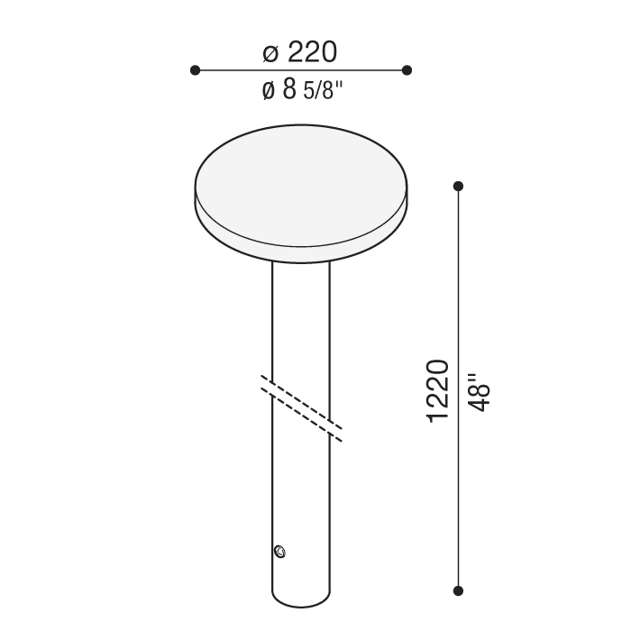 Adatto anche ad uso esterno. Driver 220 - 240V integrato e Led di ultima generazione con potenze fino a 11W. Corpo e coperchio in alluminio primario pressofuso. Elevata resistenza all’ossidazione grazie al trattamento di passivazione a base di zirconio ealla verniciatura con resine poliestere stabilizzata ai raggi UV. Diffusore in Policarbonato ottico ad alto spessore con finitura PoliGLASS, tramite stampaggio ad iniezione proprio e successive rifiniture manuali. Guarnizioni in silicone per il mantenimento del grado IP66. Bulloneria in acciaio inox A4. Predisposto per installazione rapida in pali Ø60 standard, tramite molle in acciaio inox ad espansione. Predisposizione per vite di sicurezza.Cover decorativa in Policarbonato, disponibile in diverse colorazioni ed effetti, ricavato da stampaggio ad iniezione. Finitura effetto materico Corten, ottenuta tramite verniciatura. Applicazione della cover senza utensili tramite speciale striscia adesiva. Soluzione alternativa al tradizionale interramento o al basamento palo post mediante staffa di fissaggio a scomparsa. Consiste nell’inserire il palo post sulla staffa preforata da 3mm, realizzata in ferro zincato a caldo per immersione.Tappo superiore in Policarbonato nero, ottenuto da stampaggio ad iniezione proprio e successive rifiniture manuali.Diffusore in Policarbonato tripla stabilizzazione ai raggi UV, ad alto spessore con finitura poliGLASS, ottenuto da stampaggio ad iniezione proprio e successive rifiniture manuali. Versione con sorgente luminosa direzionata verso il basso. Ideale per l'illuminazione di percorsi e camminamenti ed in contesti che necessitano di un ridotto valore di abbagliamento. Colore: Grigio High Tech verniciato. Tipo lampada: 30 LED 1350 lm-5% - 11W 3000K real output lm 950 . Versione a led con alimentatore integrato. H: 1200.