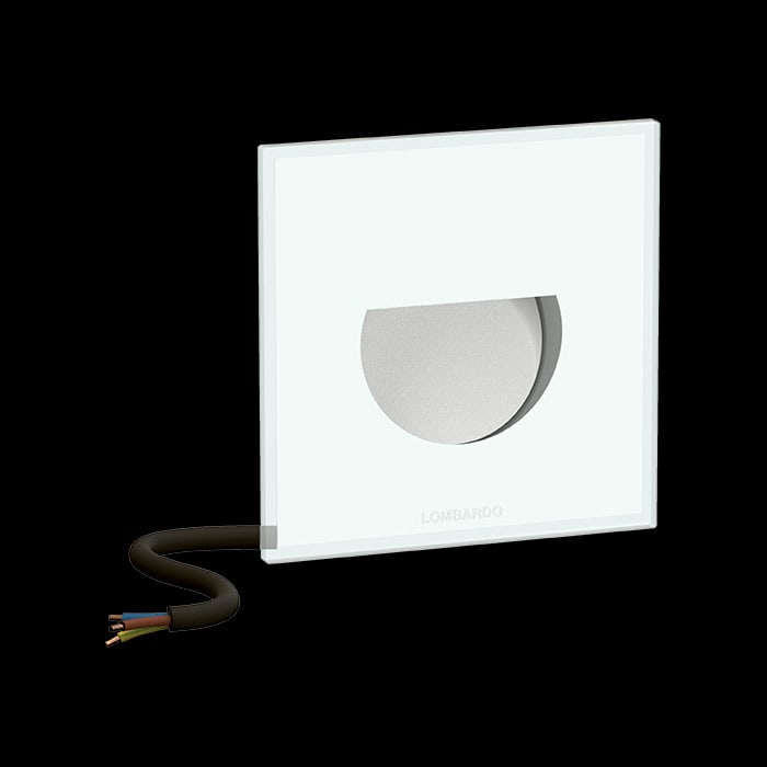 Pin Q Asimmetrico - Adatto anche ad uso esterno incasso parete. Corpo in alluminio primario pressofuso EN-AB44100; elevata resistenza all’ossidazione grazie al trattamento di cataforesi. Diffusore in vetro temprato e serigrafato. Apparecchio inaccessibile fornito con 0.20 m di cavo di alimentazione H05RN-F pre – cablato e resinato. LED a tensione di rete. Deflettore in alluminio. Dimmebarile a taglio i fase. LED a tensione di rete. Nessun rischio fotobiologico, RG0 gruppo di rischio esente (EN62471). LED2W 200 lm 4000K. Colore: Bianco.