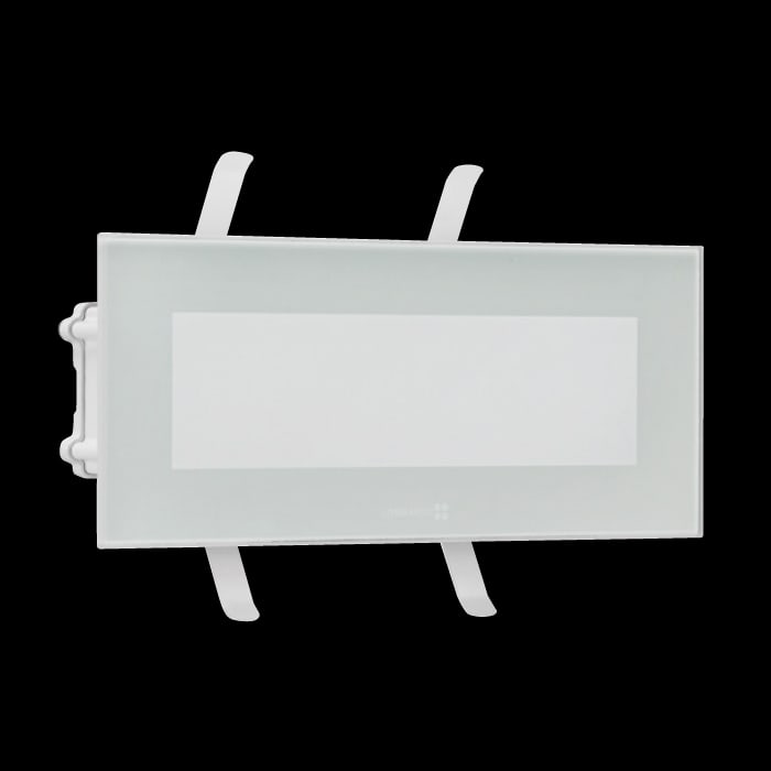 Adatto per installazioni a parete e controsoffittature in cartongesso o ad uso esterno. Corpo in alluminio primario pressofuso EN-AB44100; elevata resistenza all’ossidazione grazie al trattamento di passivazione a base di zirconio e alla verniciatura conresine poliestere stabilizzata ai raggi UV. Diffusore in vetro temprato e serigrafato. Guarnizioni in silicone. Bulloneria in acciaio inox A4 o AISI 316L. Modello brevettato.