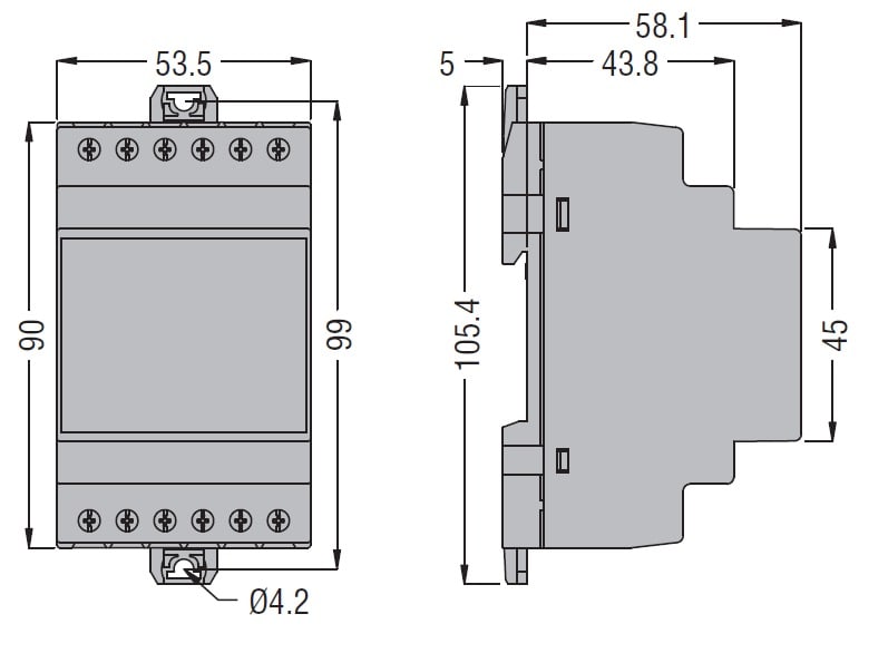 Gli strumenti digitali sono realizzati in contenitori modulari da 3 moduli. Le misure effettuate in TRMS (True Mean Squere/ vero valore efficace) consentono un funzionamento corretto in presenza di armoniche. • tensione alimentazione ausiliaria 220...240V AC • Frequnza di funzionamento 50..60 Hz • Misura del vero valore efficace • Memorizzazione dei valori di max e min •1 uscita a relè con 1 contatto in scambio, ( solo per versioni DMK...R1) • Contanitore modulare DIN 43880 (3 moduli) • Morsetti : 4mm² • Grado di protezione IP40sul fronte, IP20 sui morsetti.• Campo di misura della tensione 15...660V • Frequenza di lavoro : 45...65 Hz • Impostazione primario TA 1,00...500,00 • Accurattezza ±0.25% f.s. ±1 digit.