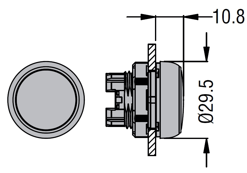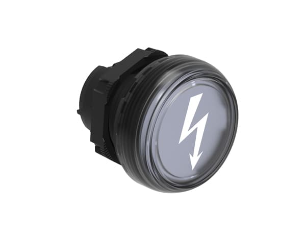 Indicatore luminoso con simbolo indicante tensione pericolosa, è ammessa qualsiasi posizione di montaggio, realizzato in poliammide. Si aggancia su foro Ø 22mm mediante ghiera filettata.