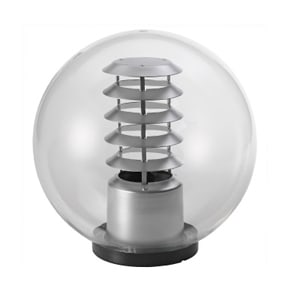 Sfera Acrilico Base Normale. Il polimetilmetacrilato (PMMA) è dotato di una eccezionale trasparenza ed è molto resistente alle più difficili condizioni atmosferiche ed agli elementi inquinanti di vario genere Inalterabile alle radiazioni ultraviolette. Disponibile diametro: 400mm. Disponibile nei seguenti colore: Prismatizzato trasparente. Base in Policarbonato autoestinguente V2. Portalampada E27. Viteria in acciaio inox. Bloccacavo autoreggente. Utilizzo su palo Ø60mm.21W. Trasparente