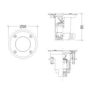 Apparecchio a Led con cornice tonda per installazione a parete, pavimento o controsoffitto (IP67). Corpo in pressofusione di alluminio EN AB 46100 ad elevata colabilità e scorrevolezza per prevenire la formazione di bolle d’aria e permettere il riempimento di getti con pareti sottili, sottoposto a trattamento di pulitura e sgrassaggio prima dell’anodizzatura. Cornice in Acciaio INOX AISI 316L Ø95 mm spessore 2,5 mm, sottoposta a micropallinatura. Staffa supporto cablaggio e dissipatore alluminio anodizzato (versioni con modulo Led). Diffusore in vetro piano temperato trasparente spessore 8 mm. Colore Inox. Guarnizioni in silicone. Viteria in acciaio INOX A2. 4W. 230 V. 4000 K. 498 lm