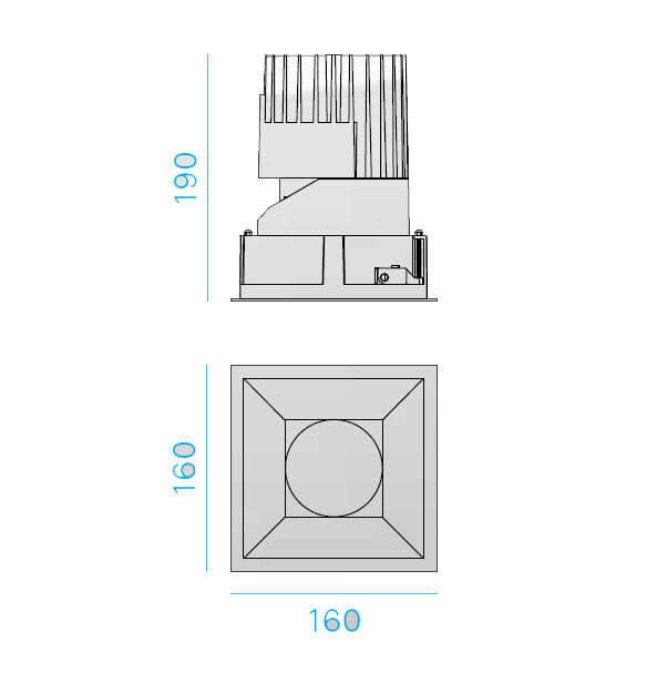 M3SF/CF - Incasso fisso quadrato a LED per installazione a soffitto. Corpo in alluminio pressofuso. Modulo LED IP54. Cornice in alluminio verniciato bianco con staffe di fissaggio regolabili per soffitti di spessore diverso. Doppio sistema ottico con lente e riflettore che migliora il comfort visivo. UGR<19 o UGR<16 a seconda del modello. Disponibili accessori intercambiabili: - cornice trimless per soffitti di spessore 12,5-25 mm; - riflettore in policarbonato in cinque finiture diverse; - griglia anti abbagliamento. Alimentatore 220-240V - 50/60Hz incluso, con driver PUSH/DIM 1-10V Made in Italy. LED 25W 2400lm 4000K CRI 90 - 40°. Colore: Argento opaco.