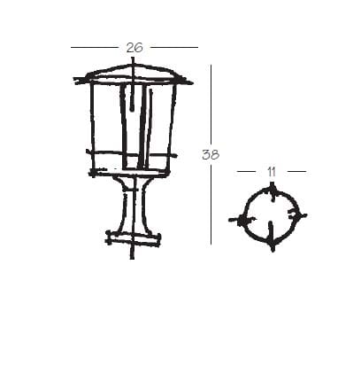 Pressofusione di alluminio. Diffusore: Policarbonato opale, Trasparente (versione standard). Colori struttura: nero, verde scuro, bianco panna. Specifiche elettriche: 23W E27, 100W E27.