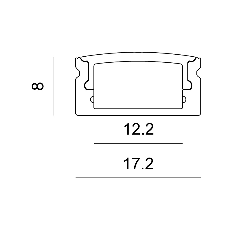 BARRA/STRIP/3E - Profilo in alluminio da superficie per striscia LED con diffusore trasparente, opale o acidato di 2m. Tappi e clip di fissaggio inclusi.
