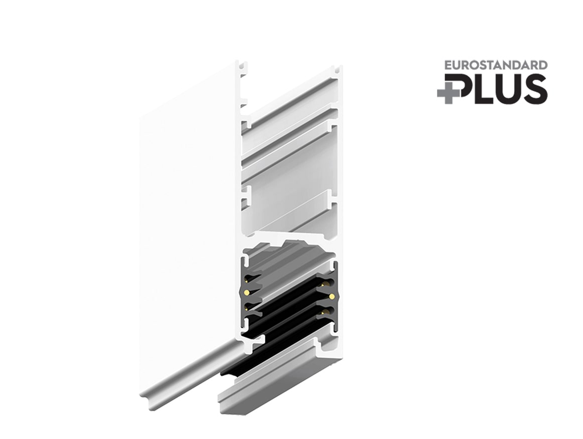 S2H - Binario ad H DALI elettrificato trifase a sospensione di 2m (tensione di rete 230/250V - 16A) a 6 conduttori: 4 per modalità trifase, 2 per la gestione di un qualsiasi segnale (es. dali, dmx, lon, eib, ecc). Lunghezza 2m. Il sistema formato da n. 3conduttori di fase + neutro permette di ottenere n.3 circuiti distinti per n.3 accensioni separate. Rete trifase: carico complessivo di 16A (10500VA), DALI 2X1A (100VA). Rete monofase: carico massimo di 16A (3500VA), DALI 2x1A. Possibilità di utilizzare lo spazio superiore per l'installazione di una strip LED per l'illuminazione indiretta. Accessori da ordinare separatamente. Normativa: EN 60570. Colore: bianco.
