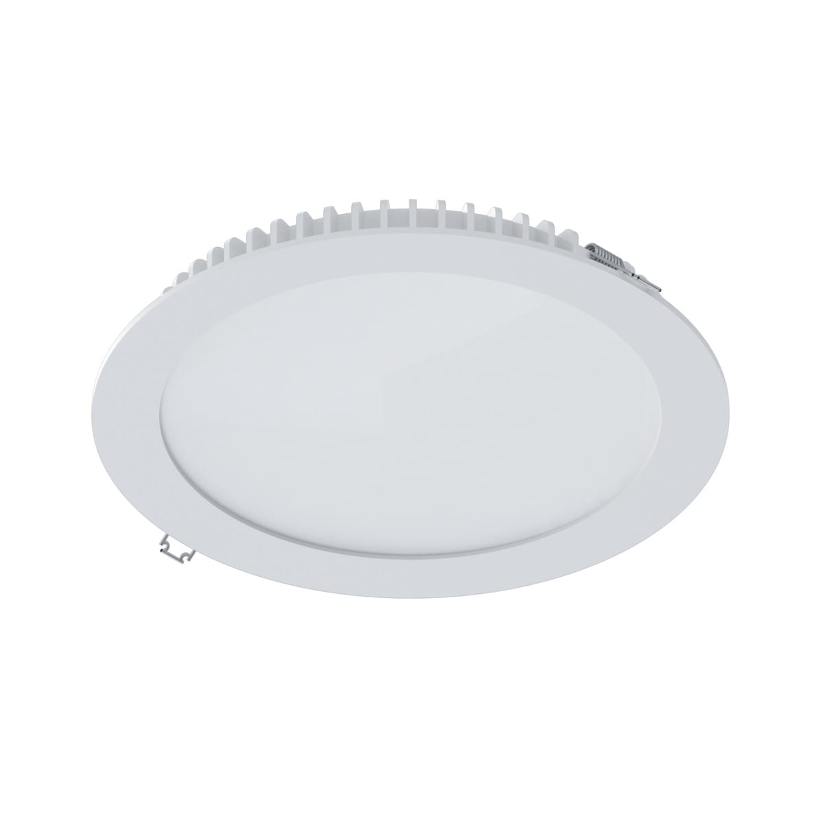 Apparecchio LED per installazione ad incasso in battuta in controsoffitto. Cornice e corpo dissipante in lega di alluminio pressofusa verniciata bianca. Schermo diffusore in policarbonato opale e molle in acciaio armonico per il fissaggio a controsoffitto di spessore fino a 15 mm. Alimentazione elettronica inclusa, da collocare a lato del prodotto.