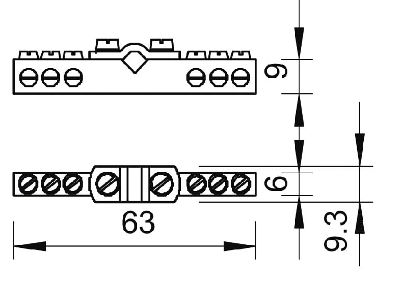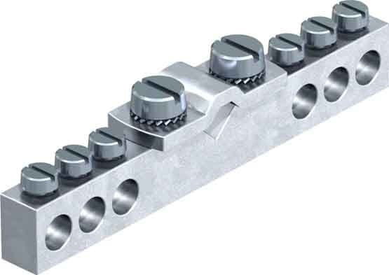Piastra equipotenziale senza coperchio,Morsetti in ottone nichelato. Collegamenti: 1 conduttore multifilo fino a 16 mm2; 6 conduttori multifilo fino a 10 mm2.