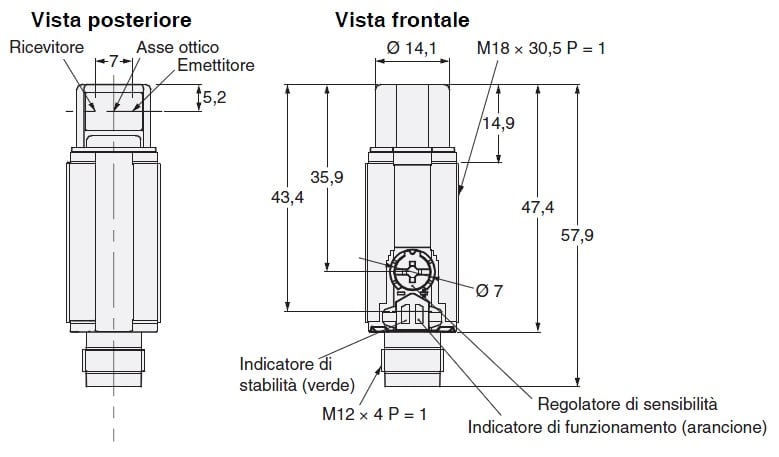 OMRON - OMRE3RADP22 SENSORE- M18PLAS.RADIALE REFLEX0,3MPNP M - E3RADP22