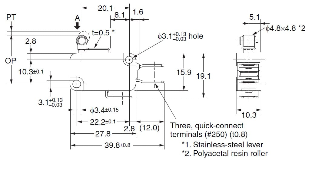 OMRON - OMRV1651C5R-1094510 MICRO-1DT16ALEVACORTAROTFS200GFASTON6,35 - V1651C5R-1094510